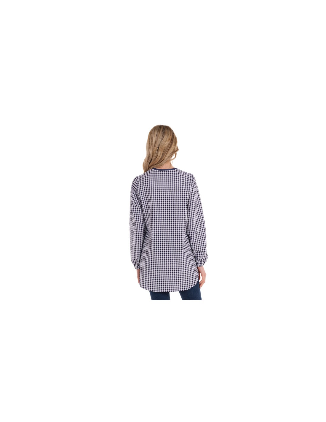 No se olvide de guardar su personalización antes de añadir a la cestaBata de maestra de manga larga, tejido Vichy azul marino combinando con cuadritos más pequeños en la parte inferior. Tres bolsillos, dos inferiores y uno en la pechera izquierda con los vivos de colores. Cierre con cremallera delantera de color azul oscuro. Aberturas en los laterales y elásticos en los puños. Largo: 84 cm