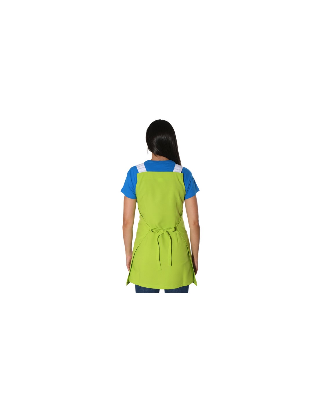 Estola para maestra de color pistacho con tirantes regulables mediante ojal. Bolsillo central delantero divisorio con divertido estampado de abejitas. Apliques de abejas bordadas en el pecho. Cuello cuadrado. Multi talla ajustable con cintas (de la talla XS a la XXL).