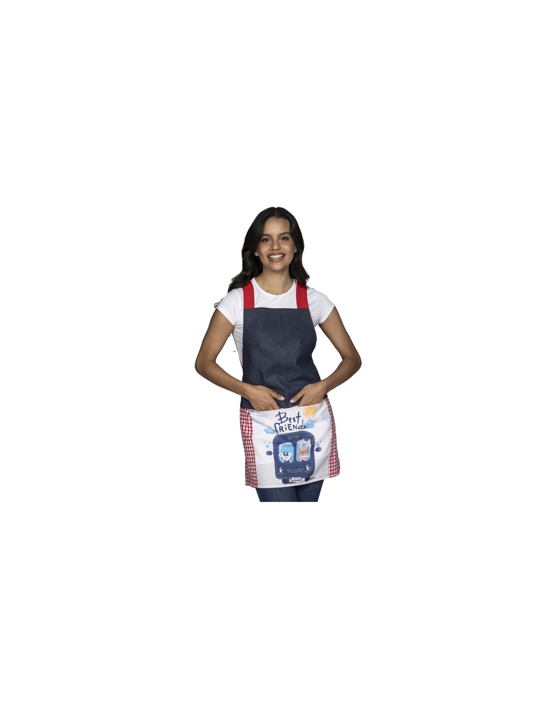 No se olvide de guardar su personalización antes de añadir a la cestaDelantal denim azul para maestra con un gran bolsillo divisorio frontal estampado con un divertido autobús con best friends y tela Vichy roja en los costados. Cuello cuadrado y pinzas en el pecho y espalda para mayor comodidad y ajuste. Tejido muy agradable al tacto. Talla única, ajustable con cintas, se adapta al cuerpo desde la talla XS a la talla 2XL.