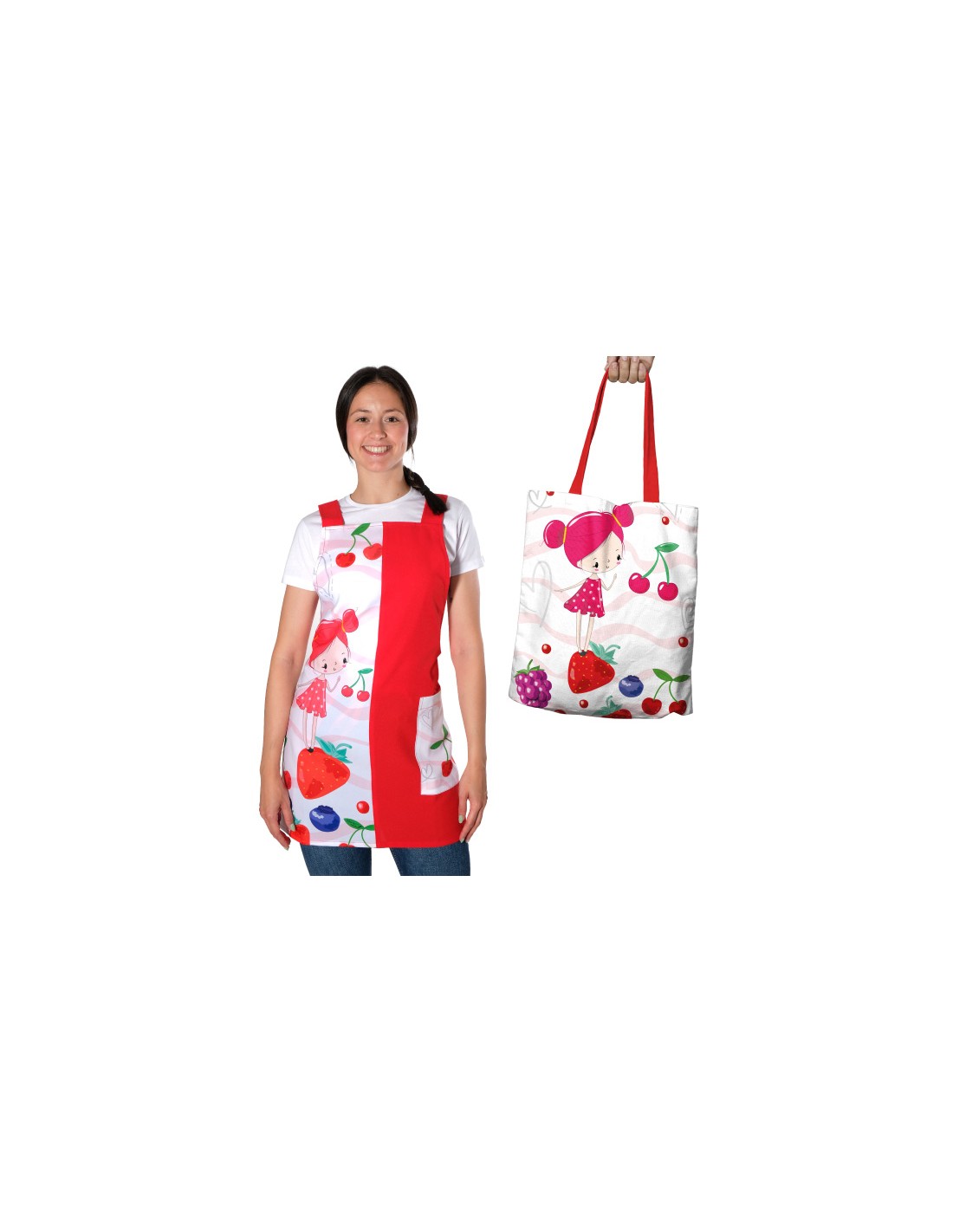 Bolsa de mano de color rojo con colorido y divertido estampado tarta de fresa, confección con tejido 100%Poliéster.
