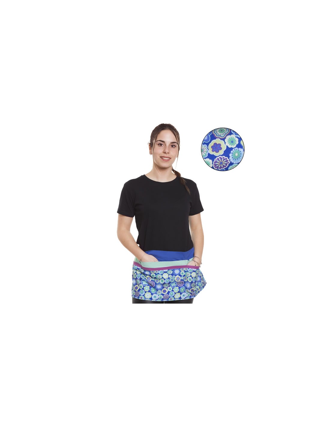 Delantal organizador para maestra de color azul turquesa con estampado de flores. Delantal corto con seis bolsillos, se ajusta con cintas, se puede anudar en la espalda, delante o en el lateral. Multi talla ajustable. Tejido suave y agradable al tacto. Medidas 77 cm de ancho x 27.5 cm de alto