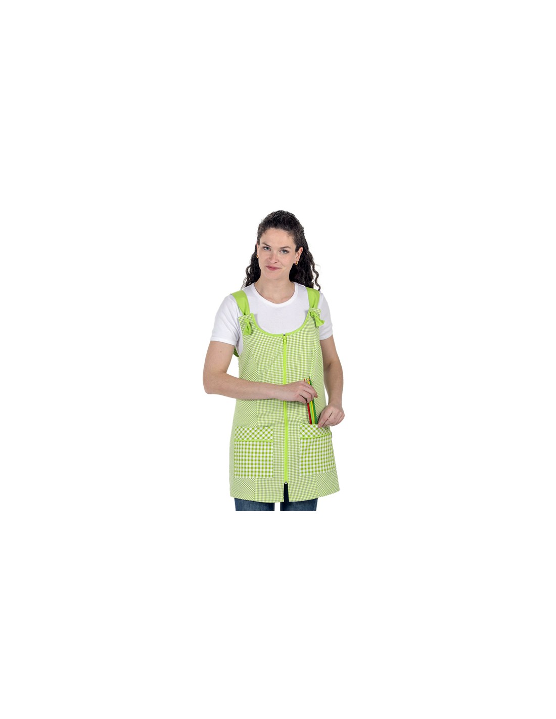 No se olvide de guardar su personalización antes de añadir a la cestaPichi para maestra confeccionado en tejido vichy de color pistacho combinado con cuadros mas grandes en bolsillos. Cierre mediante cremallera y tirantes regulables con ojal.