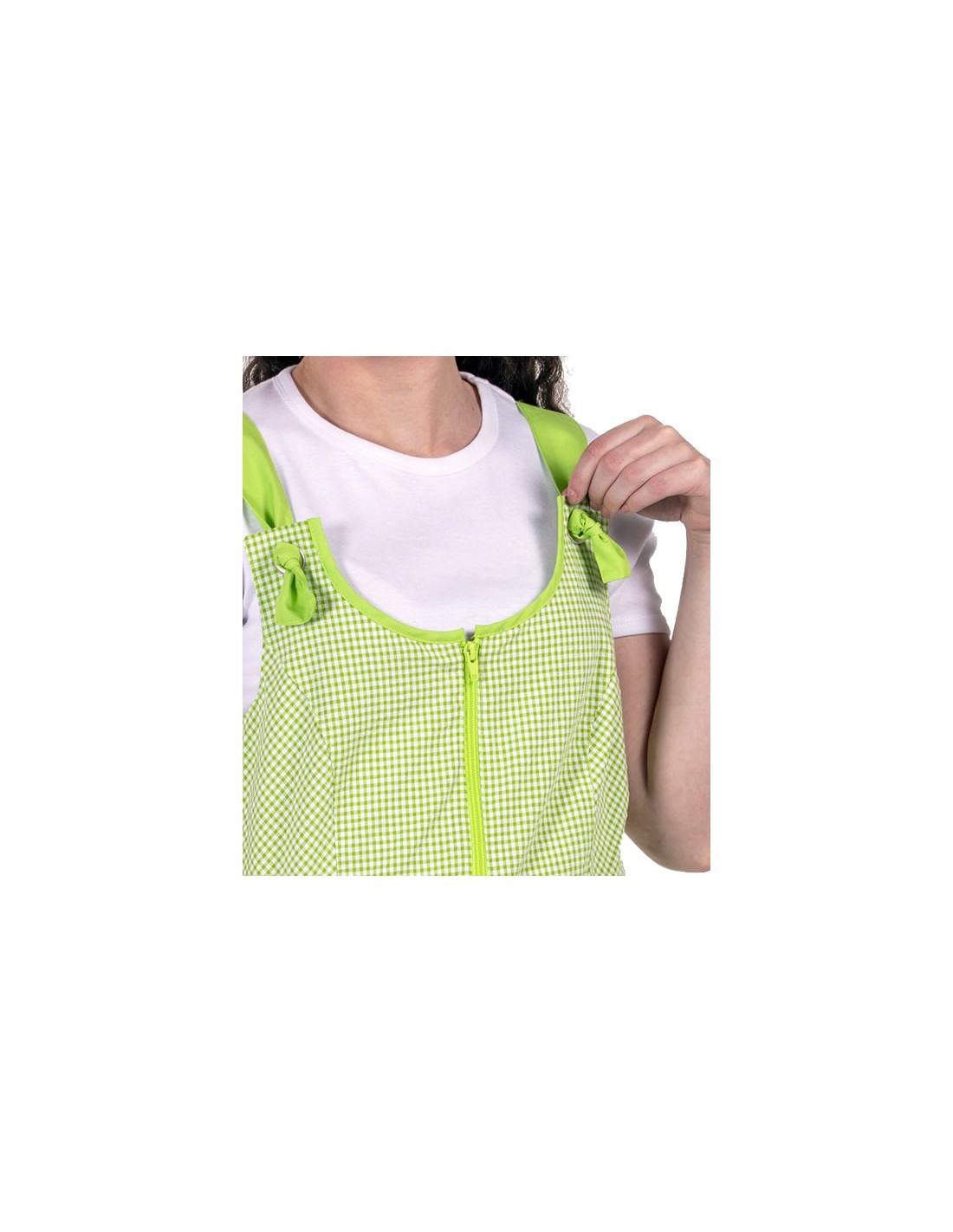 Pichi para maestra confeccionado con tejido vichy de color pistacho en combinación de tamaño de cuadros en bolsillos. Cierre mediante cremallera. Tirantes regulables con ojal. Dos bolsillos. Tejido rico en algodón, muy suave y cómodo. (Disponible de la XS a la 3XL).