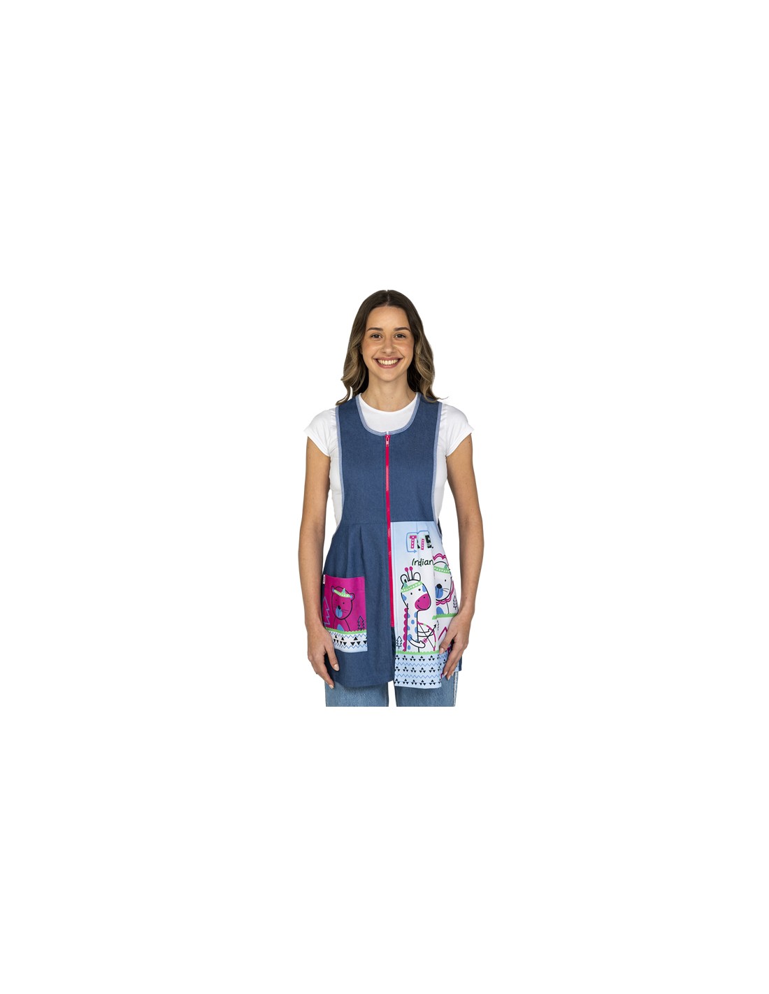 No se olvide de guardar su personalización antes de añadir a la cestaPichi vaquero cómodo, funcional y divertido. Diseño que combina tejido denim con estampado de animales. Bolsillo delantero y trasero en la espalda con un cierre fácil y funcional con cremallera central. Lo que la hace diferente es el corte con pinzas en la cintura, que crea un efecto entallado en la parte superior y se abre ligeramente en la parte inferior, aportando más movimiento y comodidad al caminar o agacharse en clase.