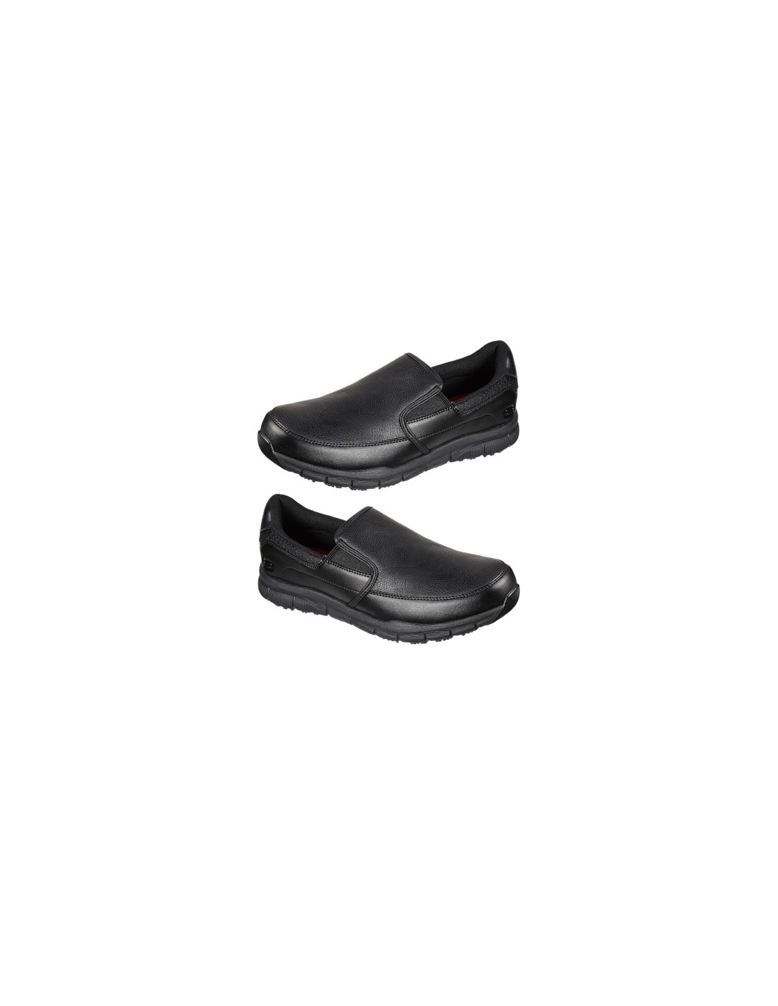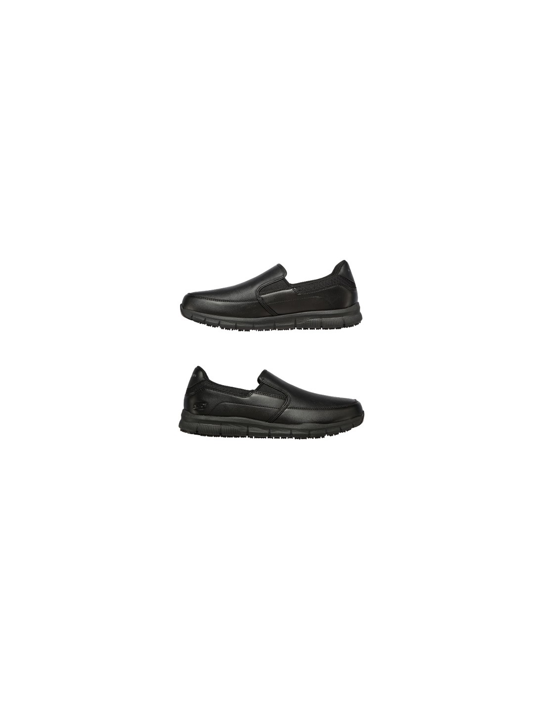 Scarpa da lavoro slip-on tipo mocassino SKECHERS con suola SRC antiscivolo testata su piastrelle e acciaio. Sovrapposizioni sintetiche sui lati, sulla punta e sul tallone per una maggiore durata. Pannelli laterali in doppio tessuto elasticizzato per una migliore vestibilità. Colletto imbottito con tessuto a rete per un comfort traspirante. Fodera interna in morbido tessuto e soletta in Memory Foam imbottita con schiuma viscoelastica e protezione contro i rischi elettrici. Disponibile in nero dalla taglia 41 alla 47,5