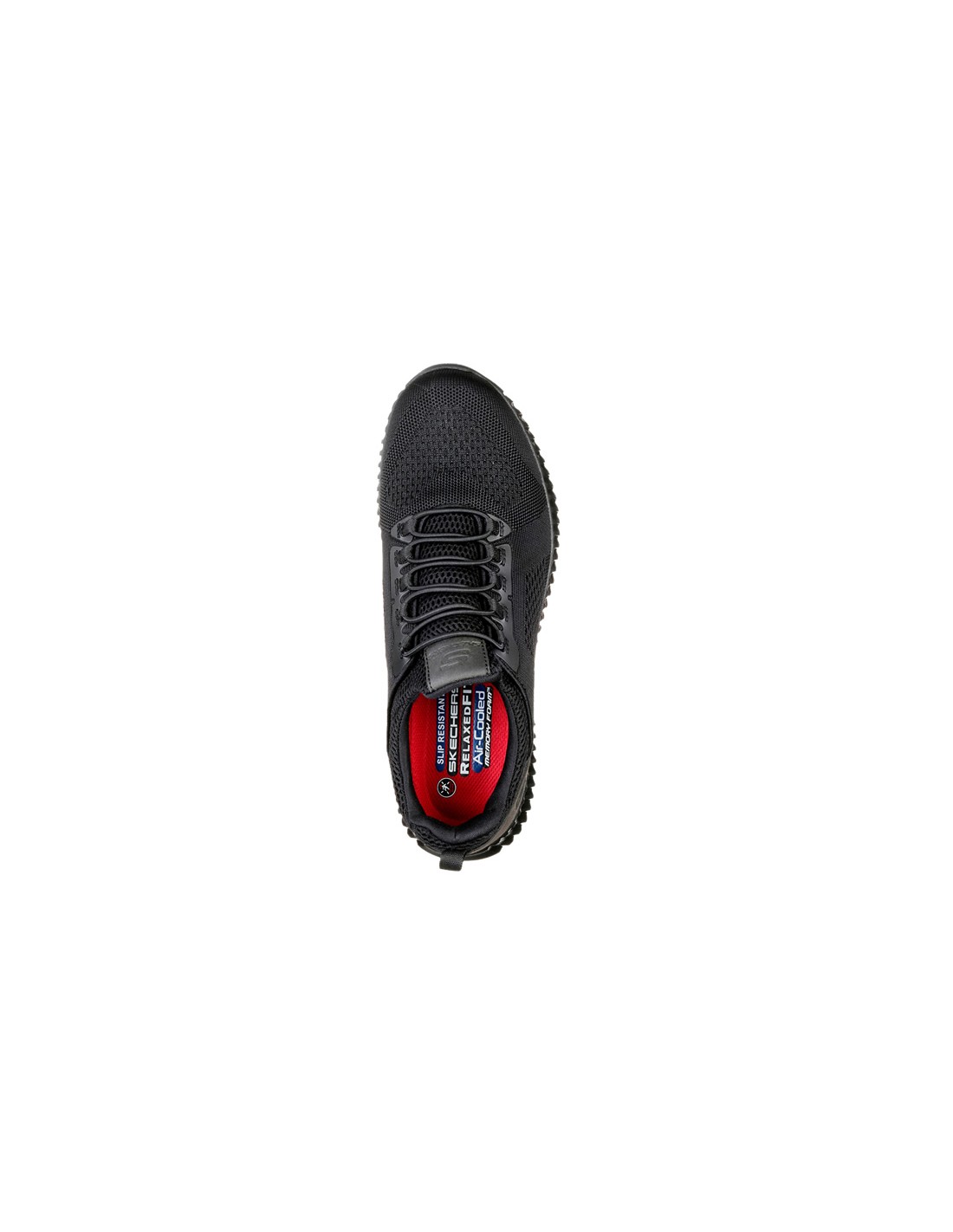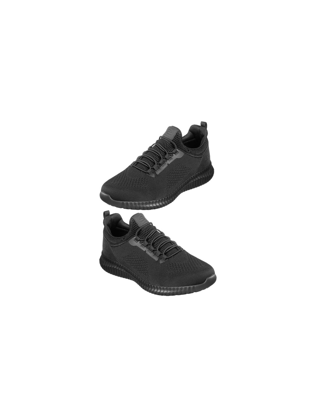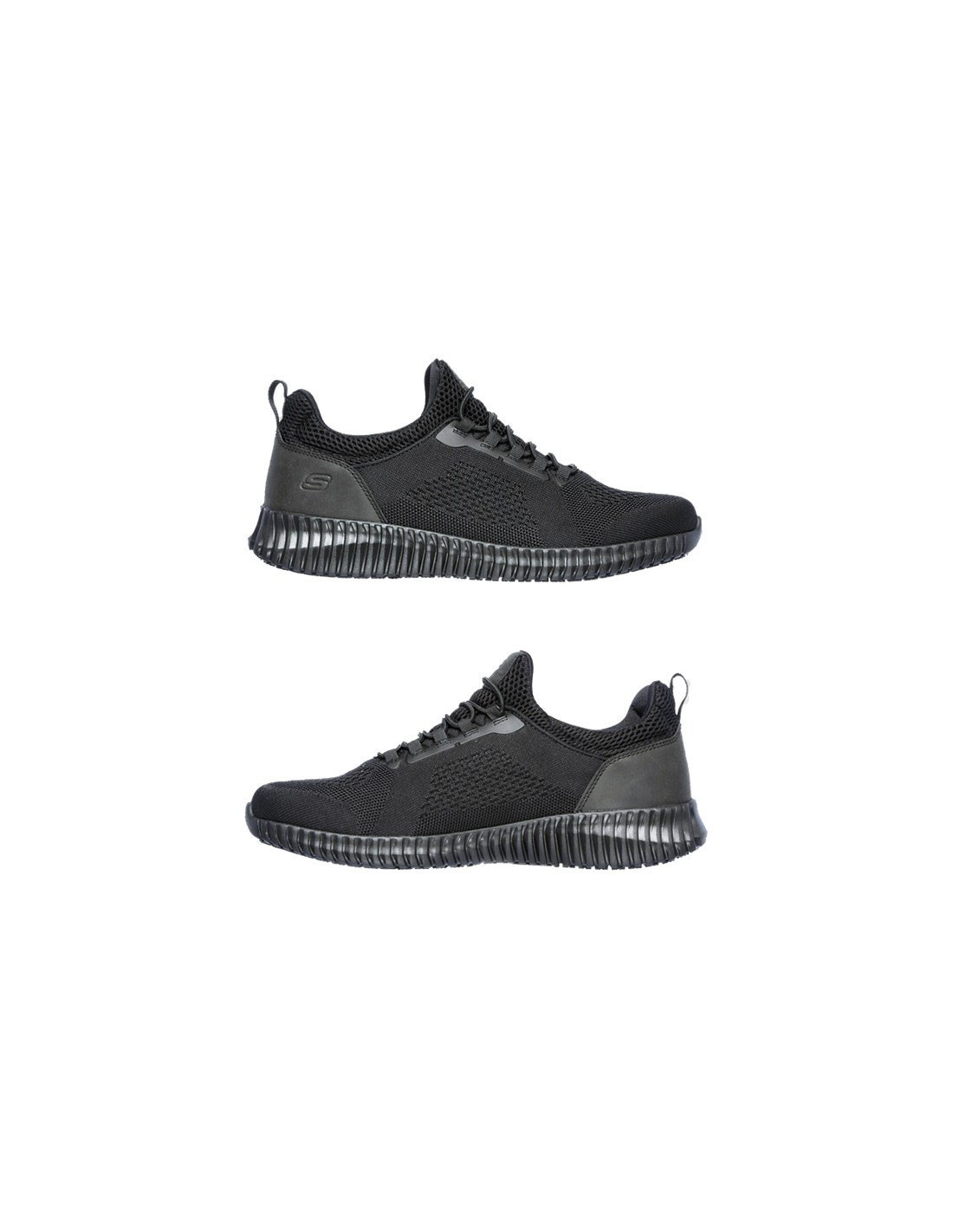Scarpa sportiva da lavoro con lacci elastici SKECHERS. Suola antiscivolo SRC testata su piastrelle e acciaio, resistente agli idrocarburi. Tomaia in mesh liscio resistente all'acqua e alle macchie. Pannello sovrapposto sul tallone. Fodera interna in morbido tessuto con soletta in Memory Foam. Disponibile in nero dalla taglia 39,5 alla 48,5.