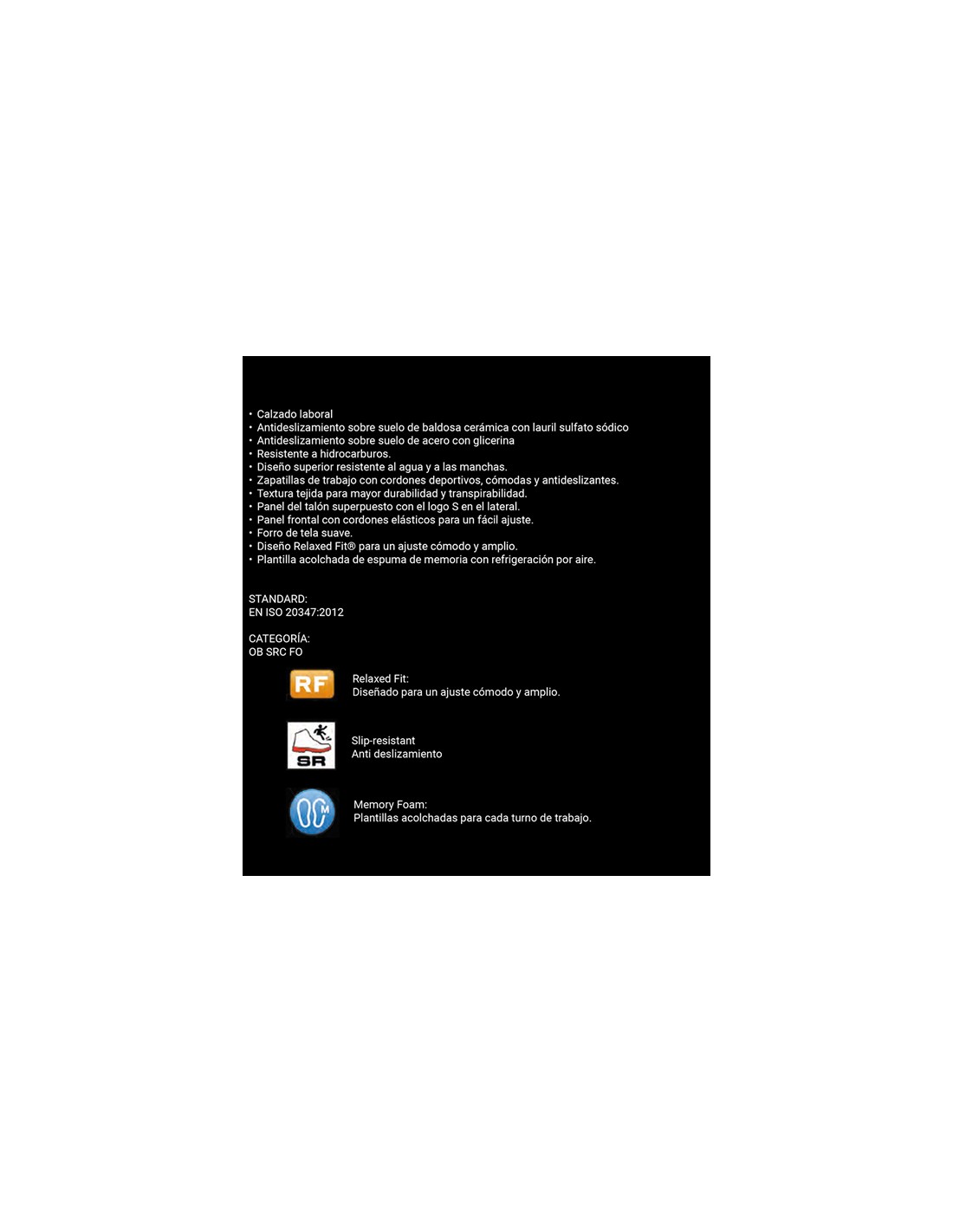 - STANDARD: EN ISO 20347:2012 / CATEGORY: OB FO SRC