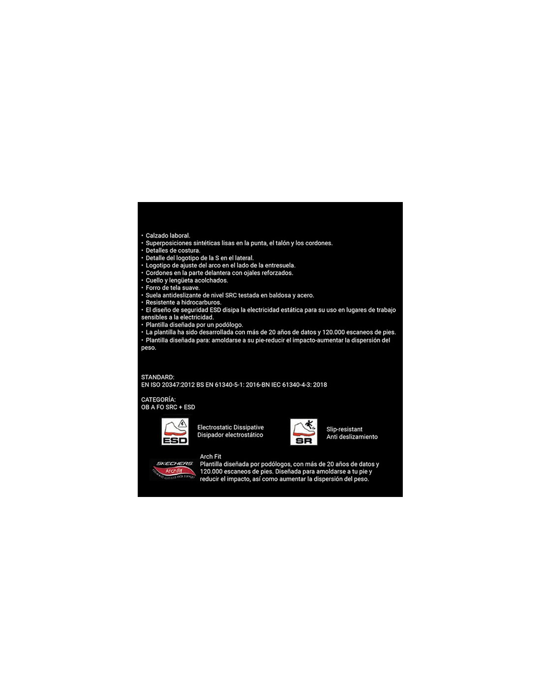 - STANDARD: EN ISO 20347:2012 / CATEGORIA: OB A FO SRC ESD.