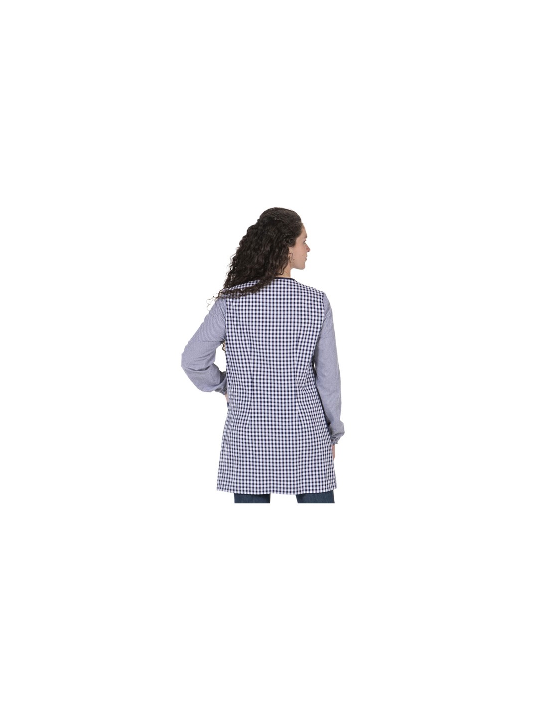 Camice da insegnante a quadretti blu navy che unisce piccoli quadretti sui lati e sulle maniche. Due grandi tasche. Chiusura con bottoni. Realizzato con tessuto ricco di cotone, molto morbido, resistente e confortevole. Lunghezza: 82 cm