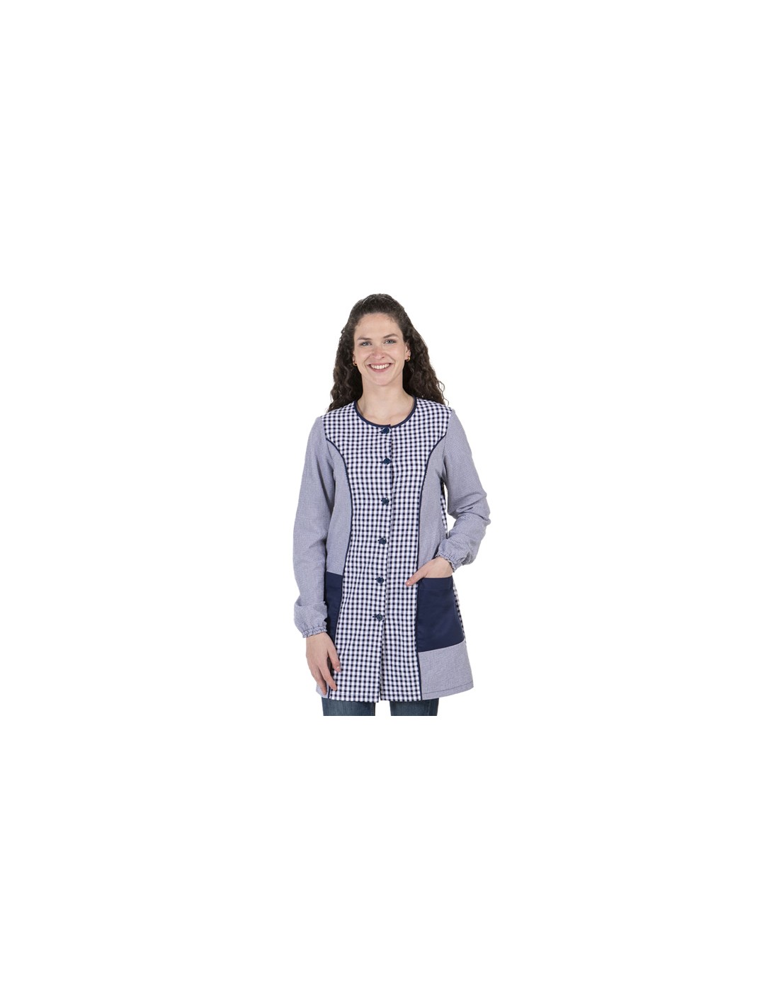 Camice da insegnante a quadretti blu navy che combina piccoli quadrati sui lati e sulle maniche. Chiusura con bottoni. Maniche lunghe con polsini elastici e girocollo. Due grandi tasche. Tessuto ricco di cotone, molto morbido e confortevole. (Disponibile dalla XS alla 3XL).