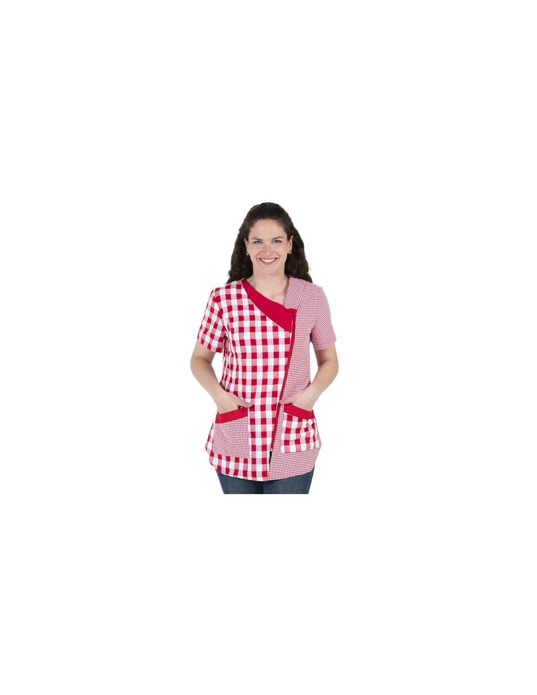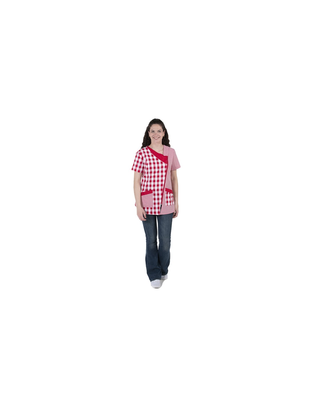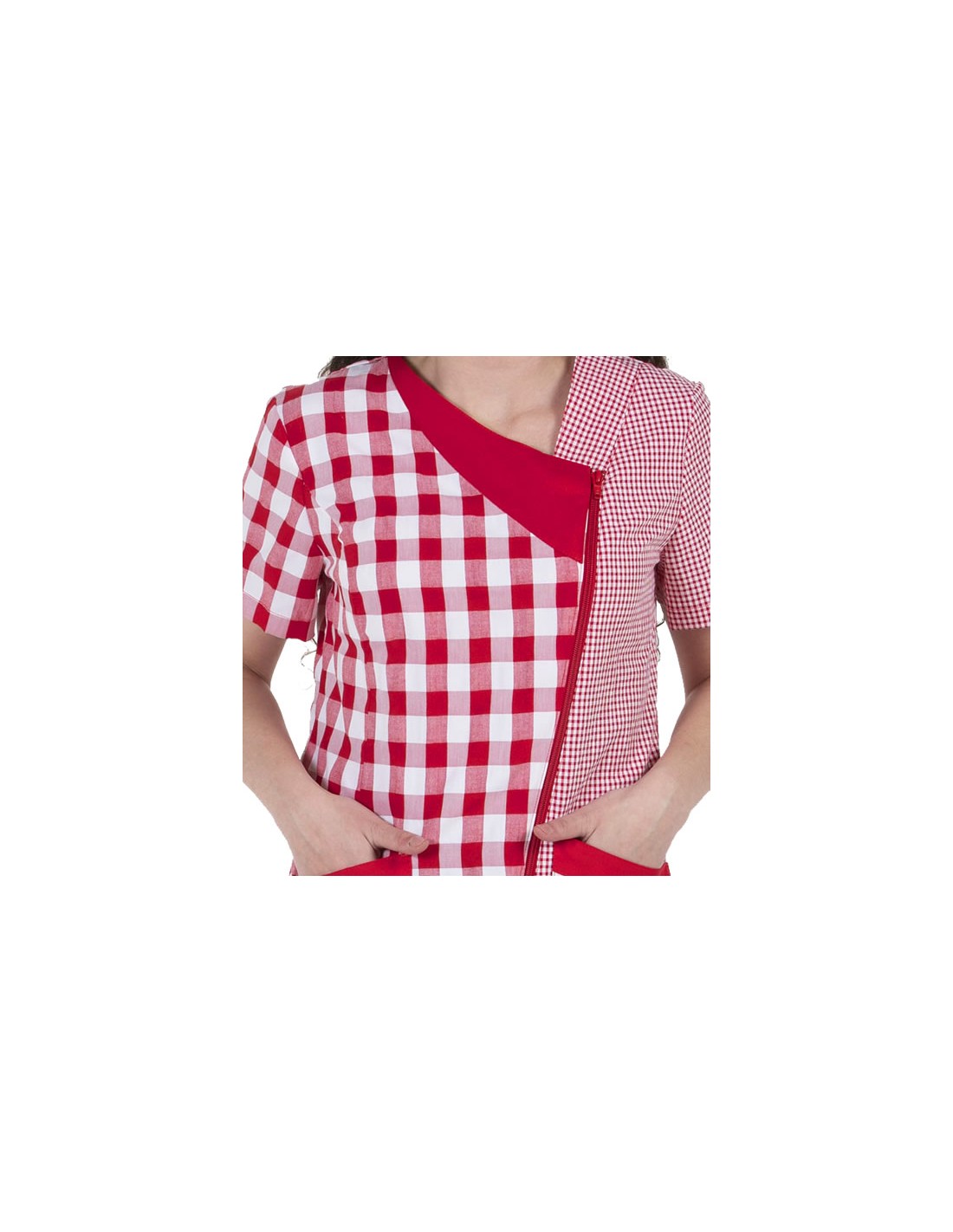 Camice da insegnante a maniche corte realizzato in tessuto a quadretti rosso in una combinazione di taglie a quadretti sulla tasca e sul fianco. Chiusura con cerniera asimmetrica. Due tasche. Tessuto ricco di cotone, molto morbido e confortevole. Disponibile dalla XS alla 3XL.