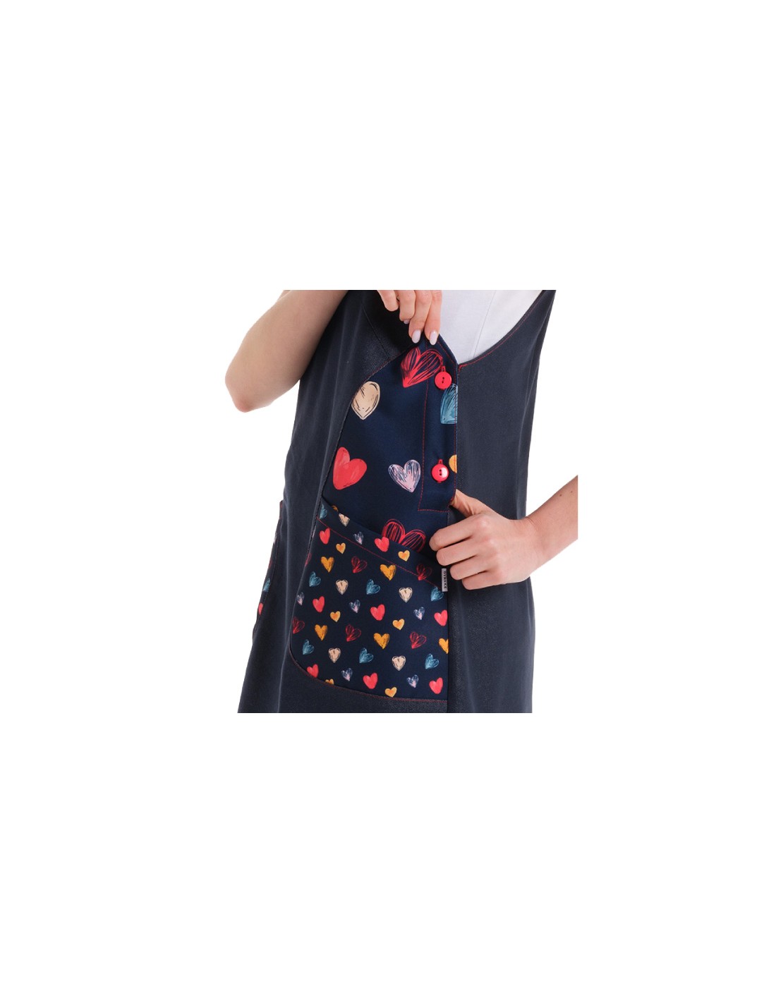 Vestito in denim a due tasche con una graziosa stampa a cuori colorati e stampe laterali abbinate. Spalline con bottone rosso decorativo. Chiusura laterale con bottoni rossi. Realizzato in tessuto ultra morbido e resistente. Lunghezza approssimativa: taglia M 82 cm. Disponibile nelle taglie dalla XS alla 3XL.