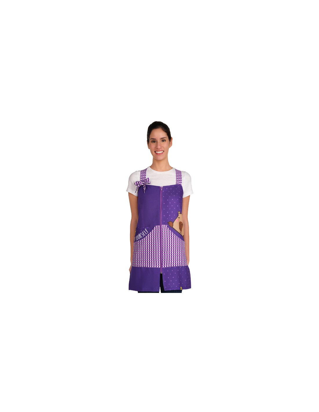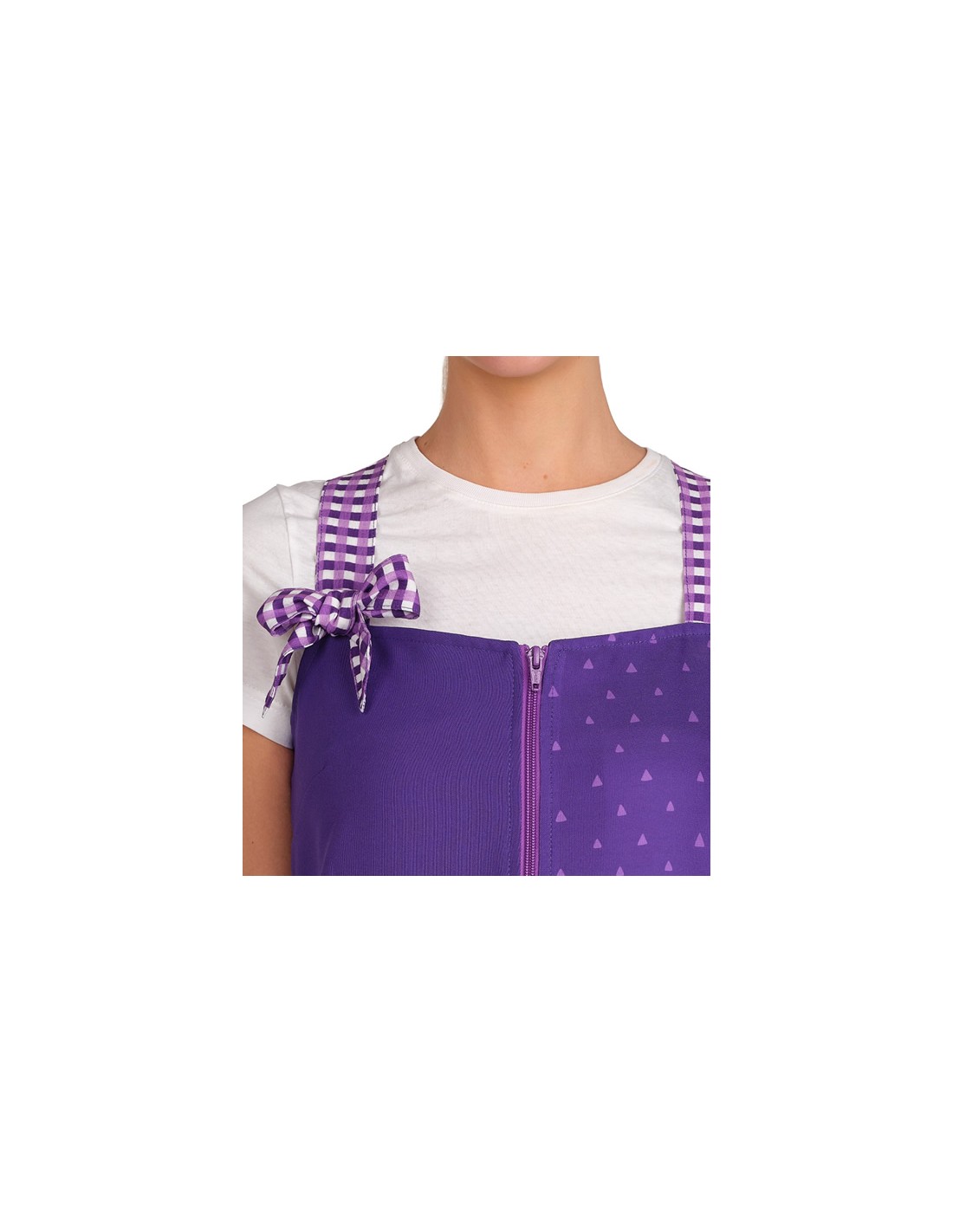 Vestito da insegnante in lilla scuro con stampa di una principessa capibara sul davanti. Presenta una spallina destra con fiocco e chiusura centrale con cerniera, oltre a due ampie tasche anteriori e una tasca interna. L'abito presenta una pince sul seno e pince sulla schiena con spalline regolabili. Spacchi laterali e tasche con travette rinforzate completano il look. Disponibile nelle taglie dalla XS alla 3XL.