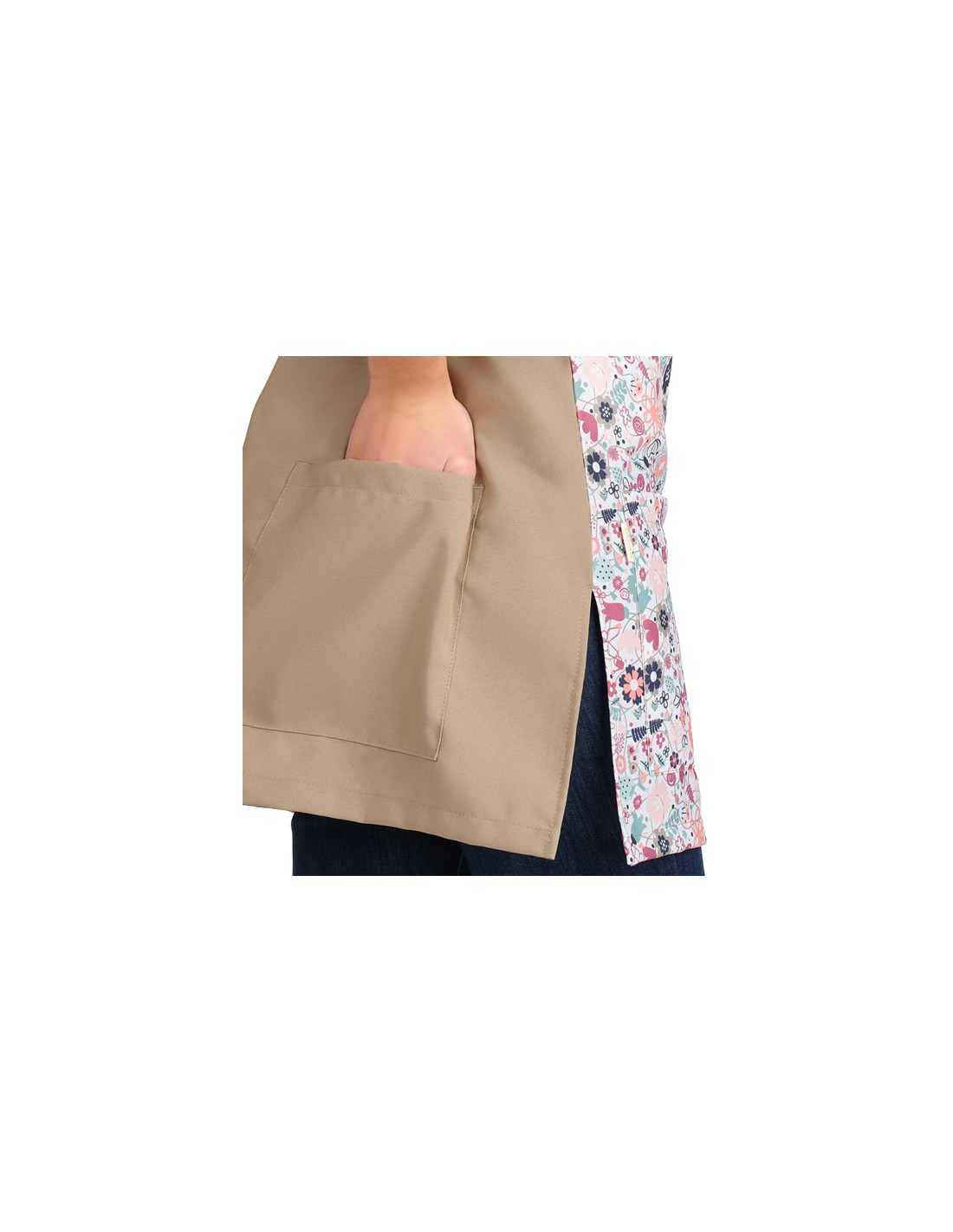 VESTITO STAMPA FIORI BEIGE. Giacca, grembiules da scolastiche