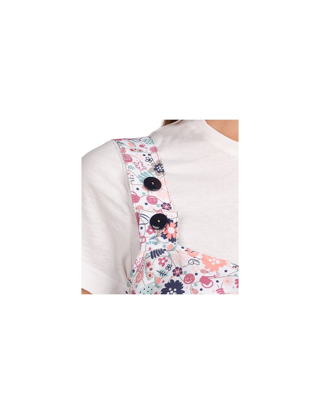 Un abito scamiciato che unisce un tessuto liscio a una vivace stampa floreale, creando un capo fresco e femminile. Presenta due tasche anteriori, una con tasca interna, e una quarta tasca sul retro. Il design include spalline regolabili con bottoni per una vestibilità comoda. Grazie alle spalline posteriori e agli spacchi laterali, l'abito si adatta facilmente a diverse corporature e consente libertà di movimento durante tutto il giorno.