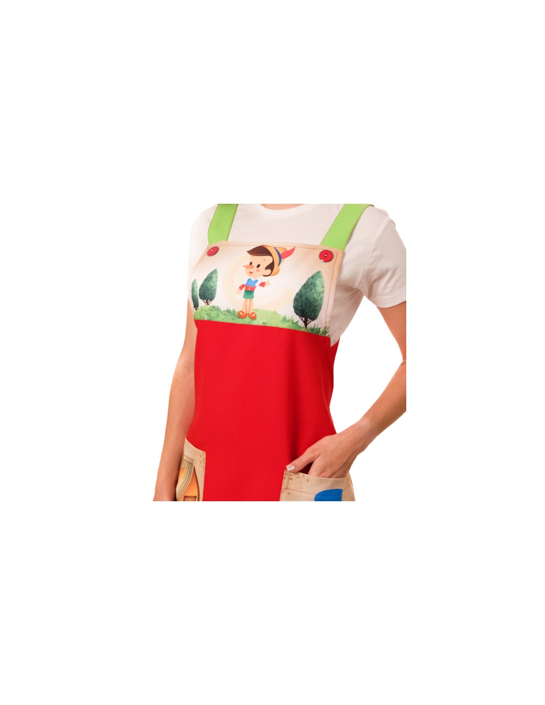 Grembiule rosso unico ed esclusivo per l'insegnante con stampa del petto di un bambino in legno sul paesaggio. Due tasche frontali, quella destra con motivo di officina in legno e quella sinistra con un simpatico grillo. Realizzato con tessuto 100% POLIESTERE traspirante, facile da lavare e asciugare. Non necessita di stiratura. Taglia unica. Regolabile con nastri dalla taglia XS alla taglia XXL