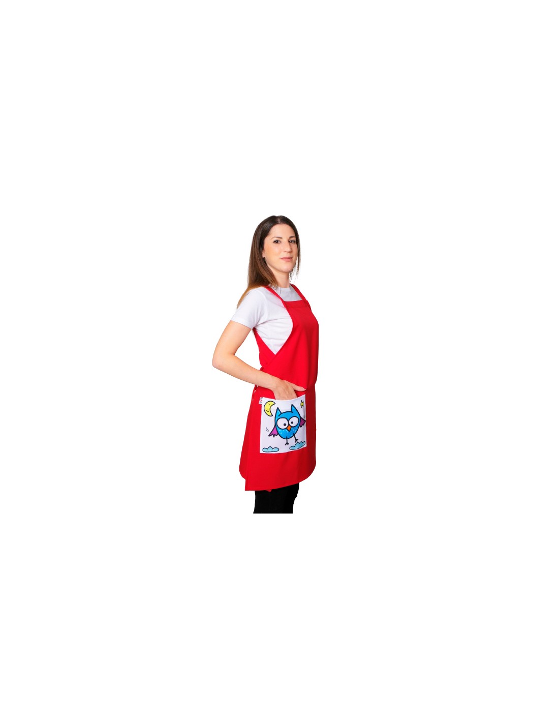 Unico ed esclusivo grembiule rosso per insegnanti con una simpatica stampa gufo su una delle tasche e una simpatica giraffa sull'altra. Realizzata con tessuto traspirante 100% POLIESTERE, facile da lavare e asciugare. Non necessita di stiratura. Taglia unica. Regolabile con cinghie dalla taglia XS alla taglia XXL