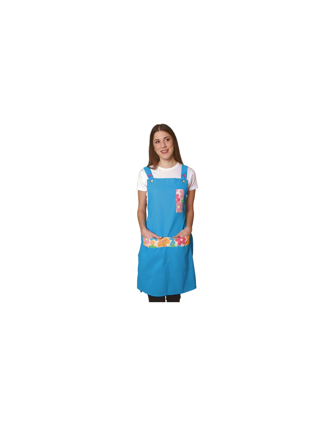 Grembiule da insegnante turchesse abbinato a stampa floreale colorata. Due tasche, una piccola sul petto per una penna e una tasca centrale più grande davanti. Spalline regolabili con bottone decorativo e occhiello in metallo. Multimisura regolabile con cinghie. 100% MICROFIBRA facile da lavare e asciugare.