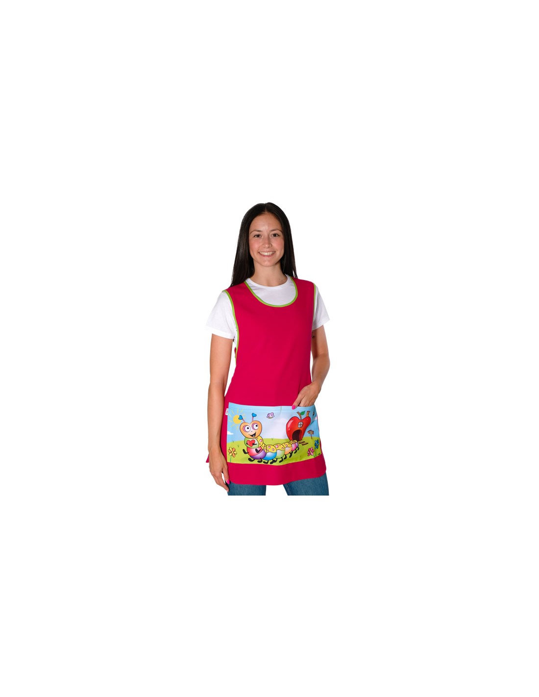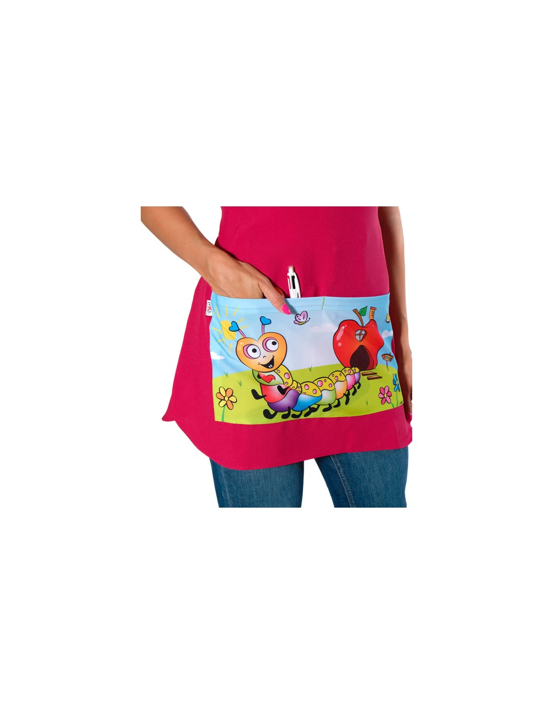 UNICO ED ESCLUSIVO Grembiule da insegnante fucsia con divertente stampa di vermi colorati sulla tasca. Sbieco pistacchio a contrasto. Una tasca divisoria centrale anteriore con due tasche più piccole all'interno per oggetti più piccoli. Composizione 100% Poliestere, tessuto traspirante, facile da lavare e veloce da asciugare. Multi taglia regolabile con cinturini (dalla XS alla XXL).
