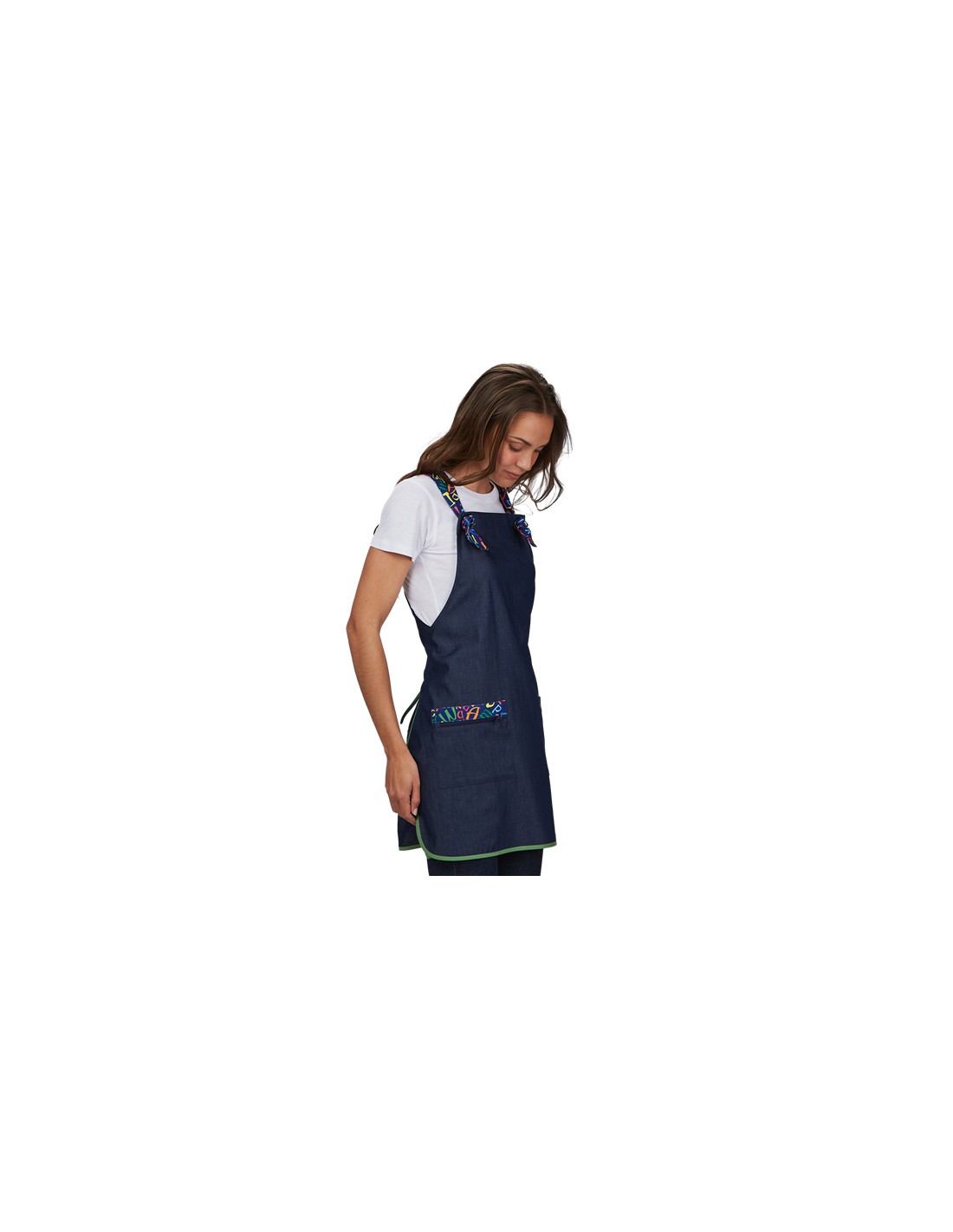 Grembiule da insegnante in denim blu navy con tre tasche anteriori: due a destra, una con cerniera e una a sinistra. Le due ampie tasche hanno un bordo stampato con lettere che richiama le cinghie regolabili. Collo squadrato. Realizzato in tessuto di alta qualità e resistente, pregiato cotone. Pinces sul petto e sulla schiena per una maggiore adattabilità. Misure approssimative 67 x 71 cm. Regolabile con cinghie, veste dalla taglia XS alla XXL.