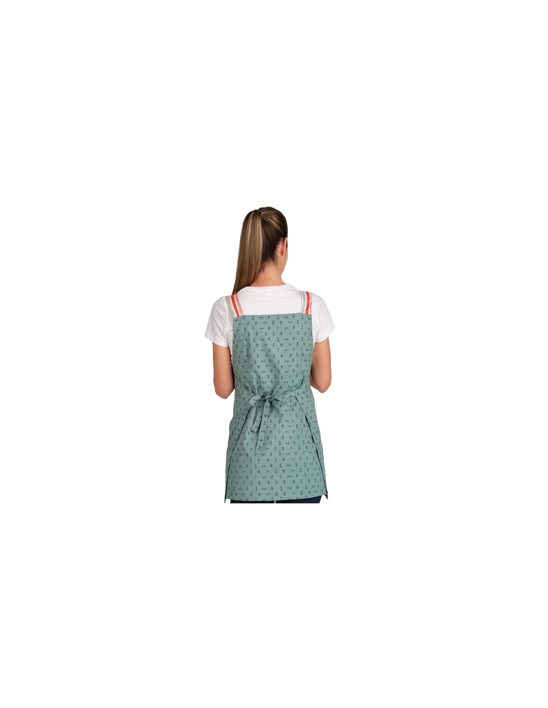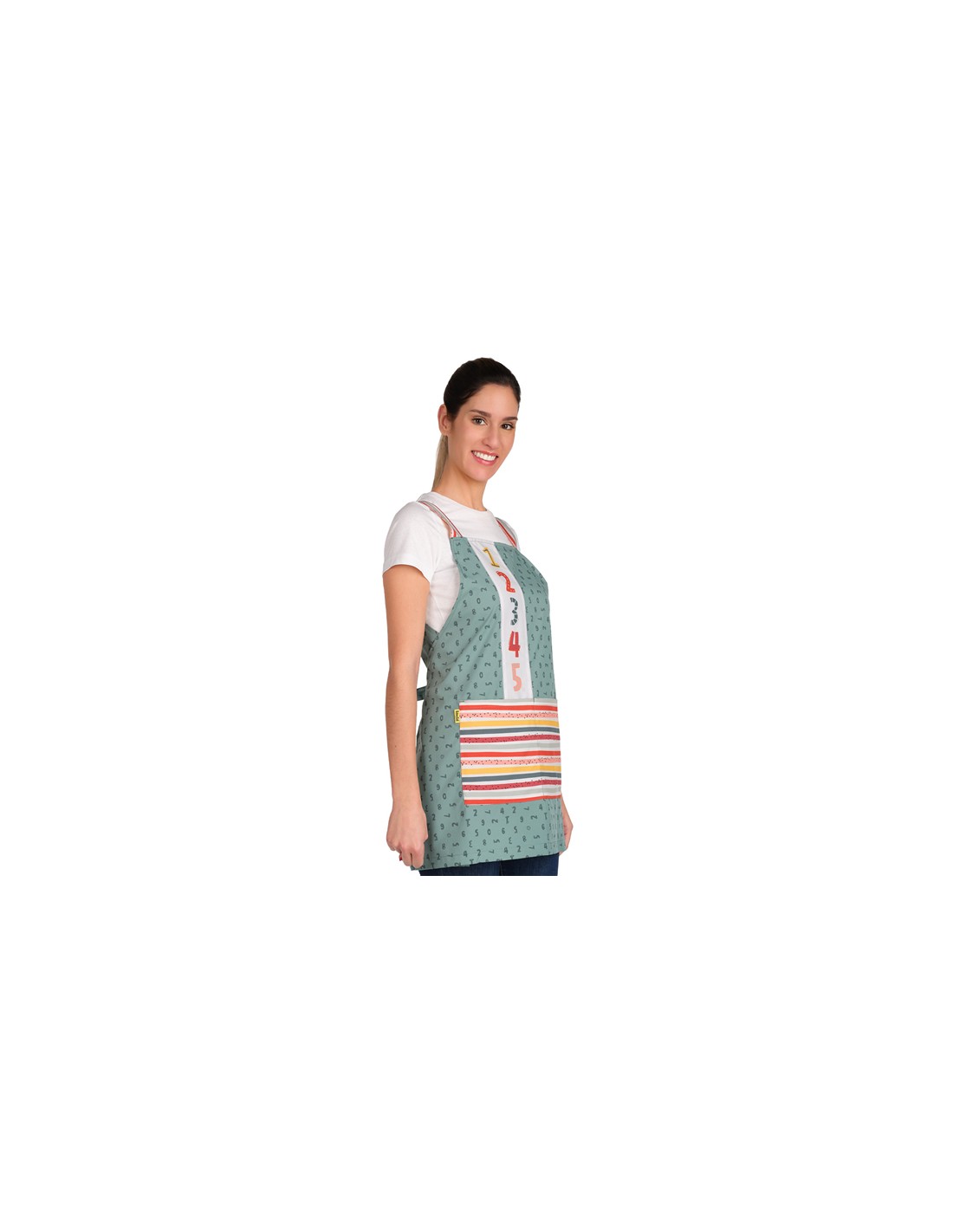 Camice da insegnante con stampa colorata di numeri sul davanti e dettagli a righe su spalline e tasche. Presenta tre tasche, spalline fisse e lacci laterali regolabili. Pinces sul retro e passanti rinforzati agli angoli di tasche e lacci.