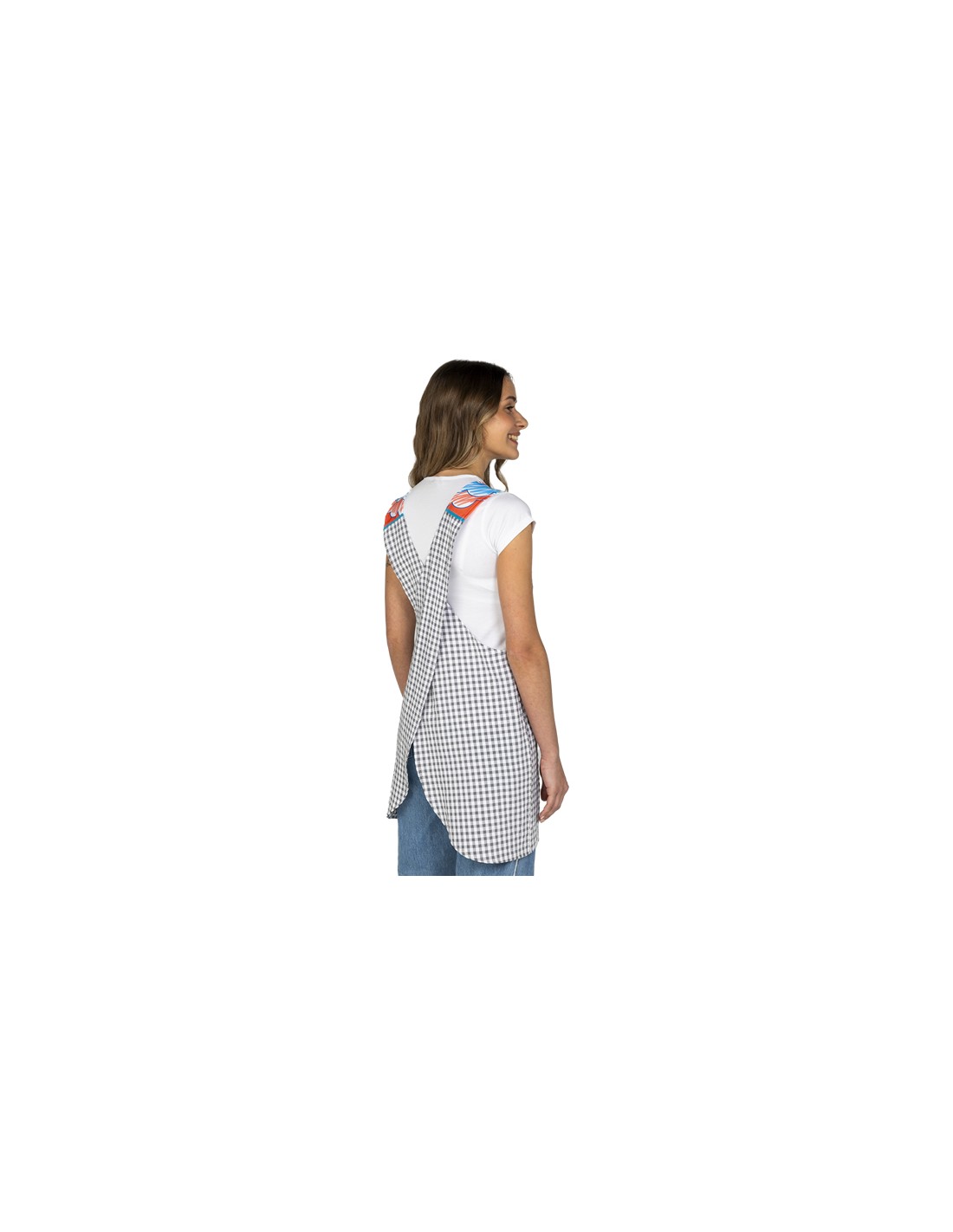 Non dimenticare di salvare la tua personalizzazione per poter riempire il carrelloGrembiule che combina il classico vichy grigio con un'ampia tasca centrale raffigurante un elefante seduto su un arcobaleno tra nuvole e stelle su uno sfondo color corallo. La stessa stampa corallo si ritrova sulle spalline, creando un contrasto originale e accattivante. Grazie alla schiena incrociata e all'ampia tasca, questa stola è comoda e pratica.