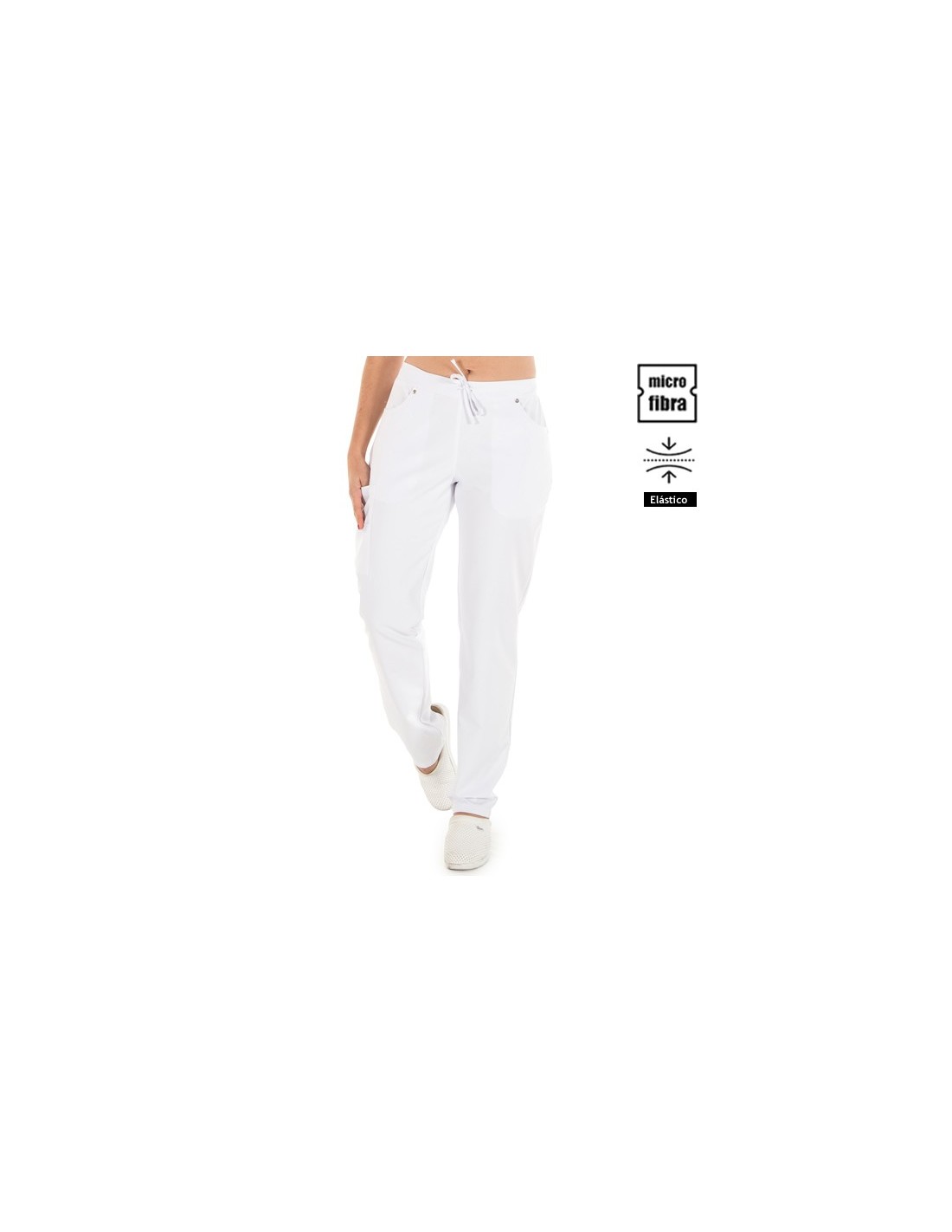 Pantaloni in microfibra elasticizzata. Unisex. Orlo sottile. Vita elasticizzata al centro della vita dietro e coulisse davanti. Una tasca posteriore invisibile, due sui lati e una doppia sulla gamba destra. Disponibile dalla taglia XS alla XXXL